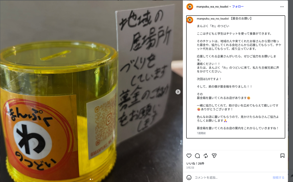 インスタ:まんぷく「わ」のつどい( manpuku_wa_no_tsudoi )https://www.instagram.com/manpuku_wa_no_tsudoi?igsh=ZW5lMG5jOGNvZTZ5 )
